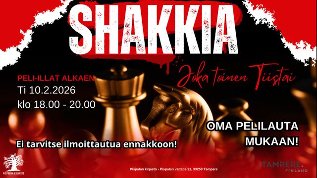 Vähemmän klikkauksia, enemmän katsekontaktia. Shakkia livenä Pispalan kirjastolla - joka toinen tiistai. Aloittelijat tervetulleita. Oma lauta mukaan.