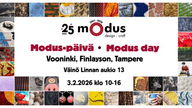 Tervetuloa tutustumaan Modus ry:n toimintaan. 25-vuotisjuhlavuotemme kunniaksi luomme tapahtumaan oman tilkkutäkkimme, joka esittelee jäsenten monipuolisia taitoja ja heidän käyttämiään materiaaleja.