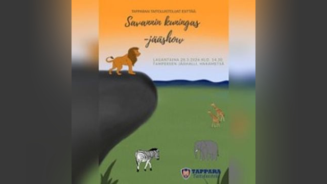 Tapparan Taitoluistelijoiden Kevätnäytös lauantaina 28.3.2026 klo 14.30 Tampereen jäähallissa Hakametsässä SAVANNIN KUNINGAS -jääshow Savannilla kasvaa utelias leijona nimeltä Sisu, josta on määrä tulla Aurinkolaakson tuleva kuningas. Tule mukaan savannin seikkailuun!…
