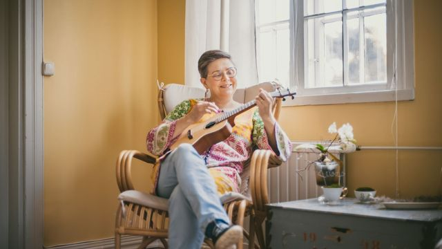 Yhteisömuusikko Minna Liljedahl laulaa ja laulattaa.