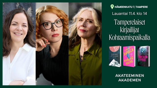Tervetuloa Tampereen Kohtaamispaikalle kuuntelemaan upeiden tamperelaiskirjailijoiden haastatteluja kun lavalle astuu Riikka Uljas, Laura Sola ja Anne Prokofjeff kertomaan heidän uutuuskirjoistaan.