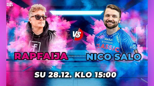 Valmistaudu vuoden huikeimpaan säbäshow'hun! Sunnuntaina 28.12. klo 15.00 Ideaparkin Bläk Boks täyttyy valosta, energiasta ja huippufiiliksestä, kun Rapfaijan joukkue saa vastaansa Nico Salon kokoaman joukkueen. Luvassa on unohtumaton näytös täynnä…