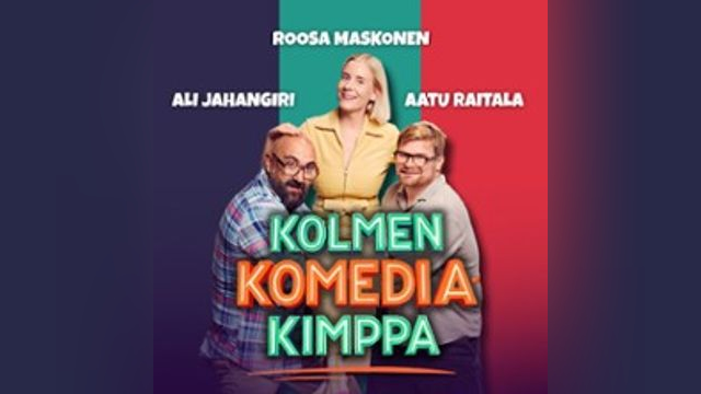 Kolmen Komediakimppa - Ali Jahangiri, Roosa Maskonen ja Aatu Raitala "Kolme koomikkoa, kolme maailmaa, yksi nauruntäyteinen ilta" Ali Jahangiri on mies, joka ei naurutaukoa anna. Terävä, nopea ja aina askeleen…