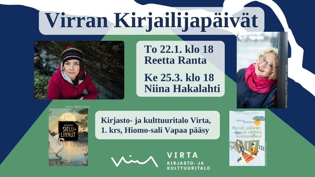 Tietokirjailija Reetta Ranta 22.1. ja kirjailija Niina Hakalahti 25.3. tulevat kertomaan kirjoistaan Nokian kirjastoon.
