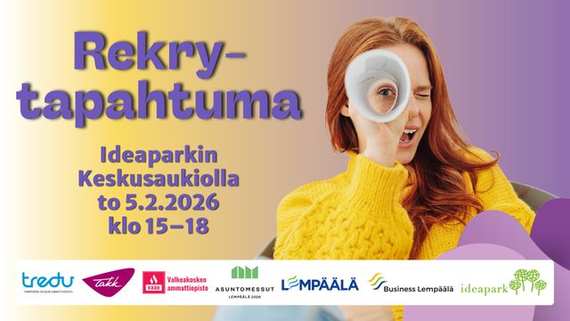 Tervetuloa Lempäälän omaan rekrytapahtumaan! Tapahtuma kokoaa yhteen työnhakijat, yritykset ja koulutusorganisaatiot. Tämä on tilaisuutesi löytää kesätyö, kausityö tai pidempiaikainen työpaikka!