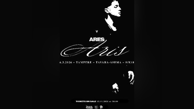 ARES - ARIS TOUR Suomen uuden aallon rap-kentän uranuurtajiin lukeutuva Ares suuntaa tähänastisen uransa näyttävimmälle kiertueelleen, Aris Tourille. Kokonaisuuden keikat ovat osa artistin uutta aikakautta, kun lavalla nähdään ennennäkemätön show…
