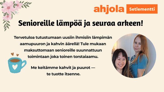 Tervetuloa tutustumaan uusiin ihmisiin lämpimän aamupuuron ja kahvin äärellä. Tule mukaan maksuttomaan senioreille suunnattuun toimintaan. Me keitämme kahvit ja puurot ― te tuotte itsenne.