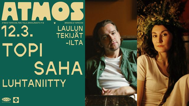 Atmoksen LAULUN TEKIJÄT -illassa minimaalinen esitys tuo esiin olennaisen. Tällä kertaa vieraaksi saapuvat Topi Saha sekä duona esiintyvä tamperelainen indiefolk-yhtye Luhtaniitty.