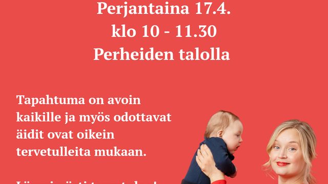 Tervetuloa tapaamaan muita perhevapaalla olevia äitejä Perheiden talolle! Tapahtumassa on mukana Imetyksen tuki ry:sta asiantuntija keskustelemassa ja vastaamassa kysymyksiin vauvan unesta.
